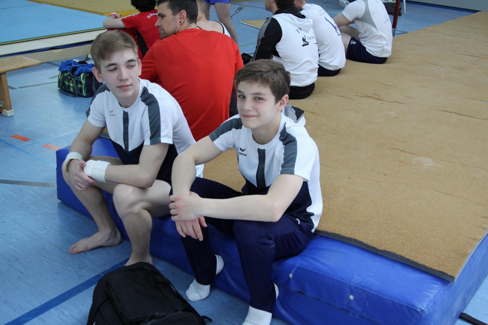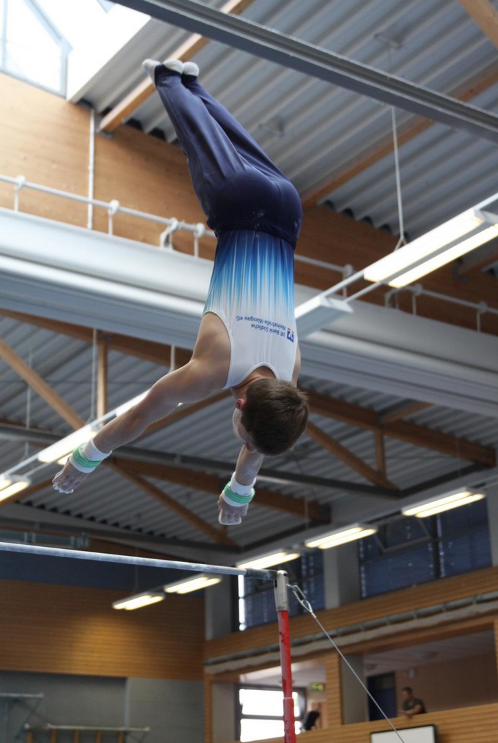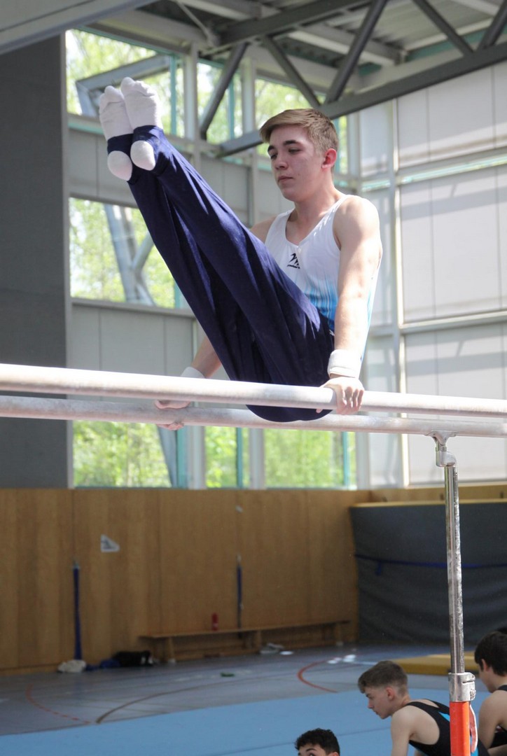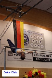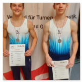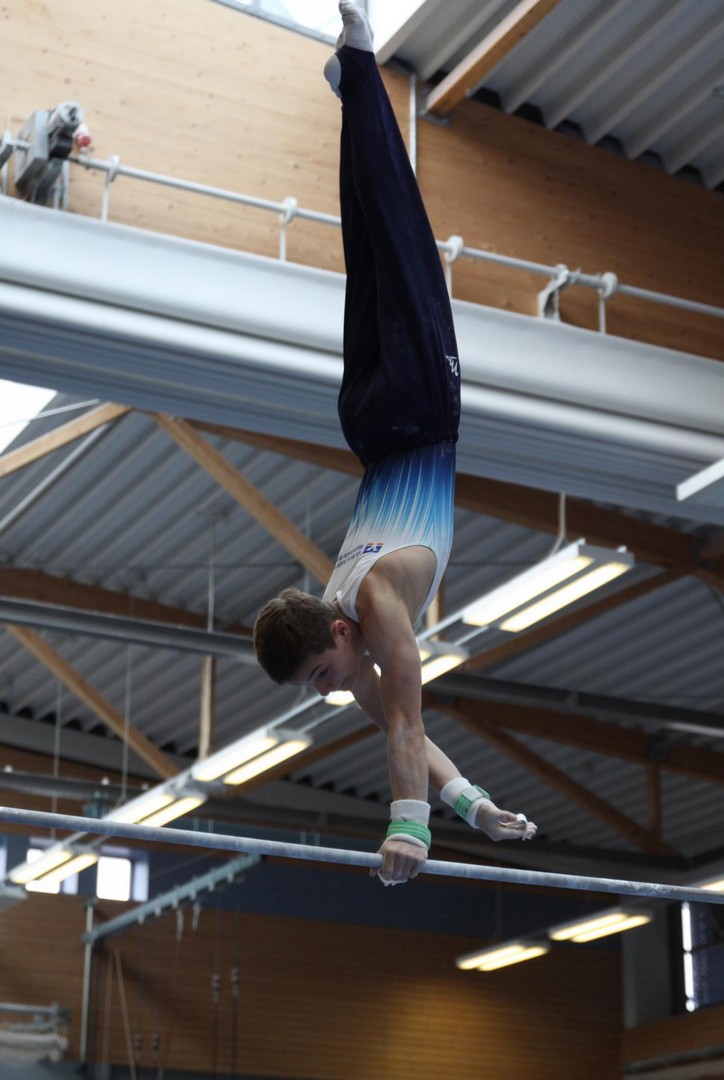 Für Oskar und Thomas war die Konkurrenz nicht quantitativ hoch, aber qualitativ eine Klasse für sich. Beide Konkurrenten (Felix Georg und Pho Pham) trainieren im Leistungszentrum in Niederwörresbach bei dem ehemaligen Weltmeister Viktor Klimenko. Trotzdem, wer den 16 jährigen Oskar am Reck sieht: Riesenwelle mit Kamm- und Ristgriff, Drehung, Kippe Handstant, eine wunderschöne Felge in den Handstand und einen gestreckten Salto als Abgang, oder die schöne Barrenübung von Thomas, ist ebenso begeistert wie seine Trainer Hermann und David Jäger. Es sind gute Turner, die sogar evtl. in die Fußstapfen von David Jäger treten können. Beide werden im Juli in Waging am See beim Deutschland-Cup an den Start gehen, und dort natürlich ihre Konkurrenten evtl. wieder treffen. Wenn sie dort, bei der Konkurrenz aus der ganzen Republik unter den ersten 7-10 landen, wäre dies ein Riesen-Erfolg. David Jäger kann ihnen sagen, wie dies funktioniert, hat er doch mehrmals den Cup-Sieg in die Pfalz geholt. Zum Schluss: was haben der Bundestrainer im Fussball (Hansi Flick) und Hermann Jäger gemeinsam: Ihr Leitspruch ist: „Wir sind auf dem richtigen Weg!“