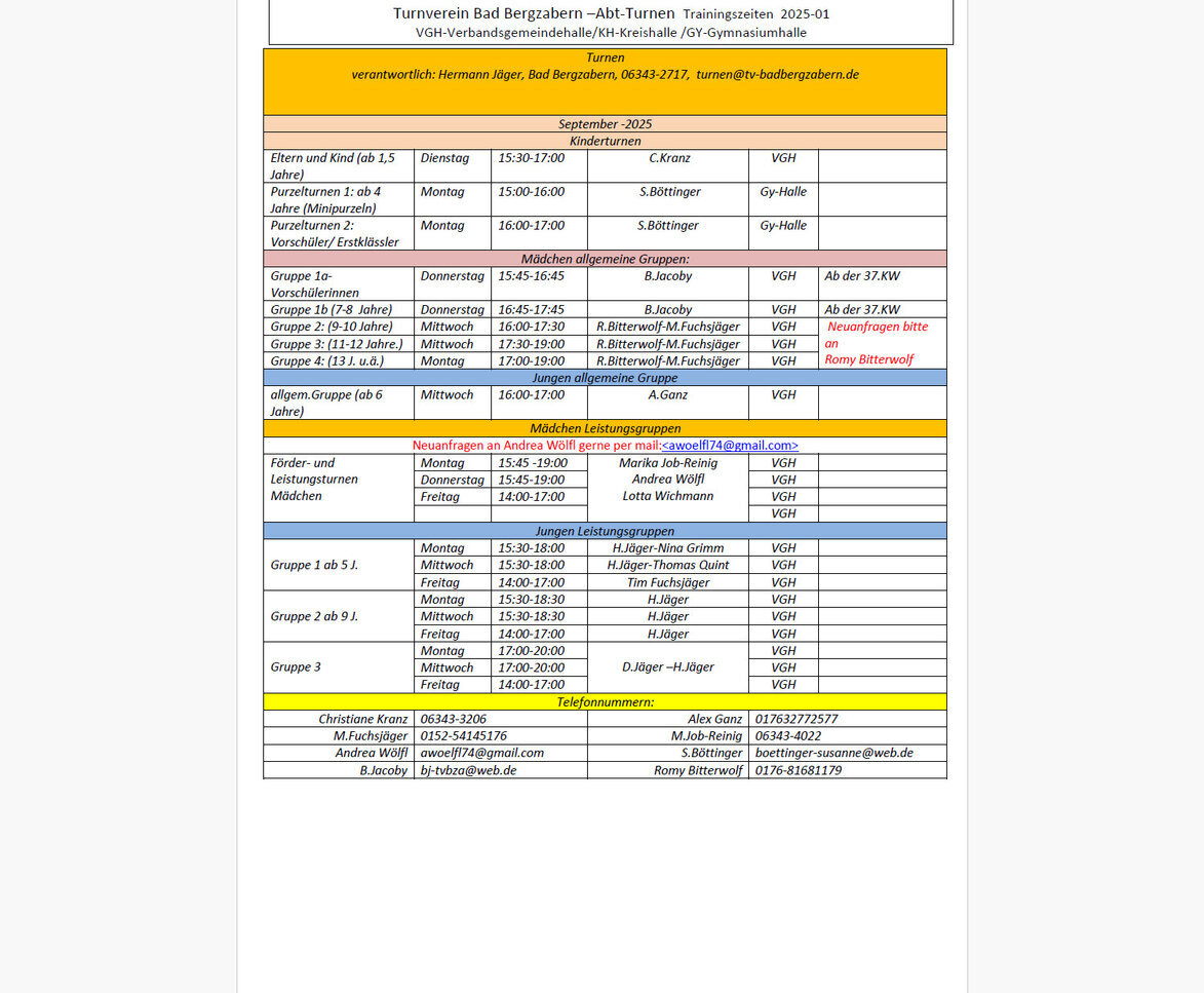 Beim Purzelturnen sind bis auf Weiteres keine Aufnahmen mehr möglich (evtl. wieder nach den Sommerferien)