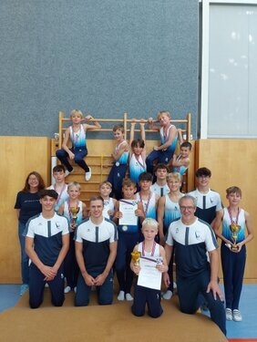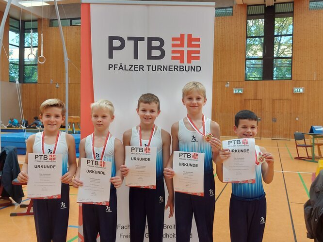 In Edenkoben trafen sich am 5.10. die Jungen des Pfälzer Turnerbundes für ihre Mannschaftsmeisterschaften. Bergzabern war mit 3 Teams vertreten: den 9-Jährigen im Pflichtbereich, der 13-Jahre-Nachwuchs und die Leistungsmannschaft (offene Klasse) im Kürbereich. Alle 3 Teams hatten vor einigen Wochen in Bergzabern im Gaubereich gewonnen, deshalb natürlich auch hohe Erwartungen. Schließlich ging es ja auch um die Qualifikation für das RLP-Finale, in diesem Jahr in Bergzabern(2.11.). Und da möchte man dabei sein. Die Jüngsten machten kaum Fehler, jedes Gerät wurde gewonnen, und am Ende konnten die Fünf nicht nur den Titel eines Pfalzmeisters mitnehmen, sondern auch die Quali für die nächste Runde. Für die Trainer eine positive Perspektive für die Zukunft.