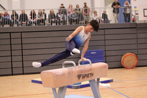 Samstag, 13.04.2024 --- Pünktlich um 09:45 begrüsst Stefan Hertel, Fachwart Turnen im Speyergau die angetretenen 40 Turner in der „neuen“ Verbandsgemeindehalle In Bad Bergzabern und bittet die ersten Jungs an die Geräte. Hermann Jäger und seine Mannschaft hat alle Geräte für die Gaumeisterschaften 2024 mustergültig aufgebaut. Im ersten Durchgang starten die meisten Neulinge und der Nachwuchs. Also auch kein Wunder, dass die beiden führenden vereine der Südpfalz, der TV BZA und der TV 1861 Landau, hier nicht vertreten sind. Sie messen sich im 2.Durchgang der Pflichtübungen an allen sechs Geräten. Drei von den vier WK-Klassen, sichern sich die Gastgeber: Cedric Mewes, Phil Walter und Maximilian Hardardt. Nur der vierte Titel wollte partout nach Landau: Oscar Lentz, dessen Vater vor einigen Jahren noch zu den Spitzenturnern in Bad Bergzabern gehörte mit vielen Rheinland-Pfalz-Titeln, holte sich diese Meisterschaft. Auch Kai Müller, Milo Bähr und Philip Leonhart waren punktemäßig nicht so weit entfernt, aber diese Pflichtwettkämpfe sind sehr beliebt und entsprechend quantitativ auch stark besetzt. Klar, die Abstände der einzelnen Teilnehmer sind am Ende sehr gering. Christoph Gerhardt und Rocco Stobrawe machen hier ihre ersten Wettkampfschritte, lernen dazu. Im nächsten Jahr sieht dies schon anderst aus. Finn Lazinka hatte im vergangenen Jahr Nic Mayer aus Landau vor der Nase. In diesem Jahr war Nic einige Plätze hinter ihm, aber Oscar Lentz und Philipp Hübscher aus Landau waren eine Winzigkeit von einem halben Punkt davor, und außerdem rutschte er in den höheren Jahrgang. So verpasste er knapp das Treppchen und erreichte den undankbaren vierten Rang.